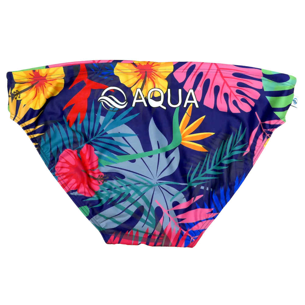 Aqua Swimwear is fun, bright, sporting and designed to make you look and feel great at the beach, by the pool or any occasion. Dive in with this eye catching pair that is made of finest light weight Italian soft and smooth fabric. It is chlorine resistant and stretches to fit to your shape. Keep fit, play your favourite sport or wear these high quality swimmers everyday. You will have many years of happiness whilst looking great in your AQUA swimwear.